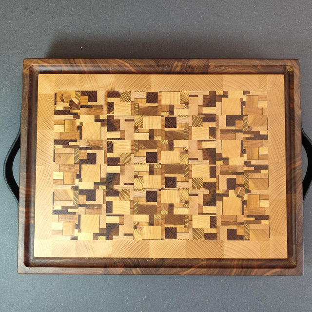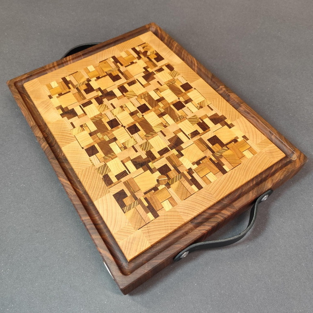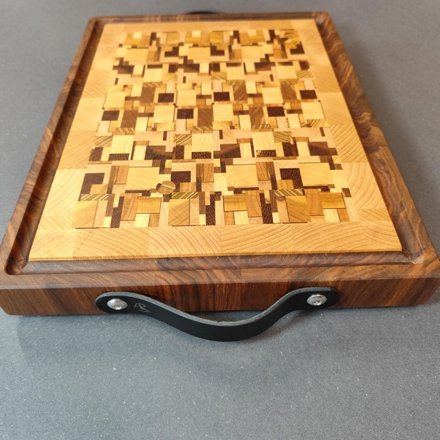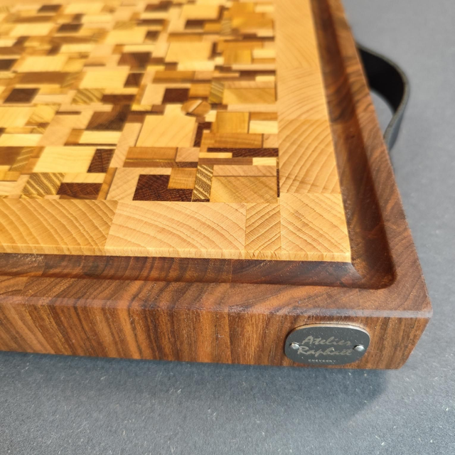 Planche à découper en bois de bout, façon billot.