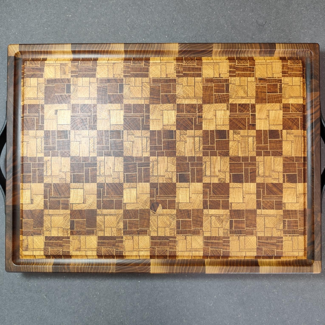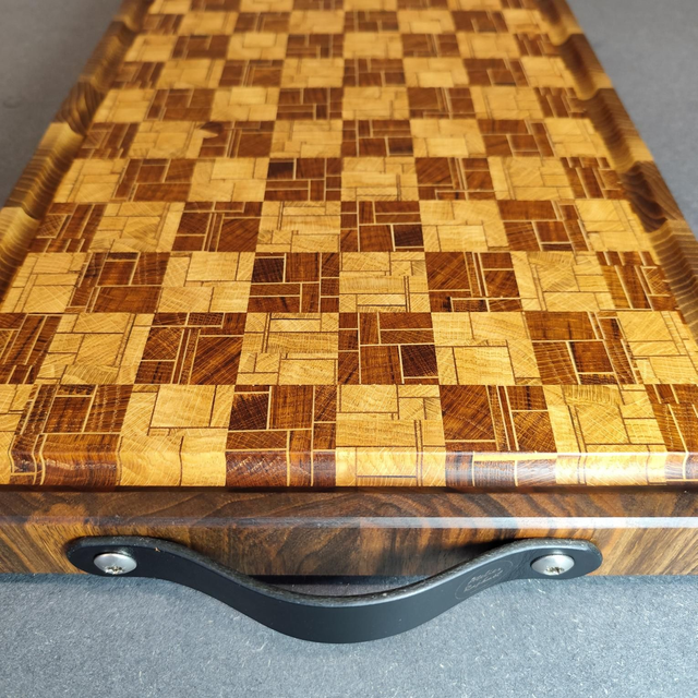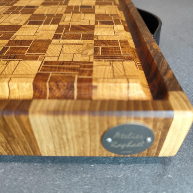Planche à découper en bois de bout, façon billot.